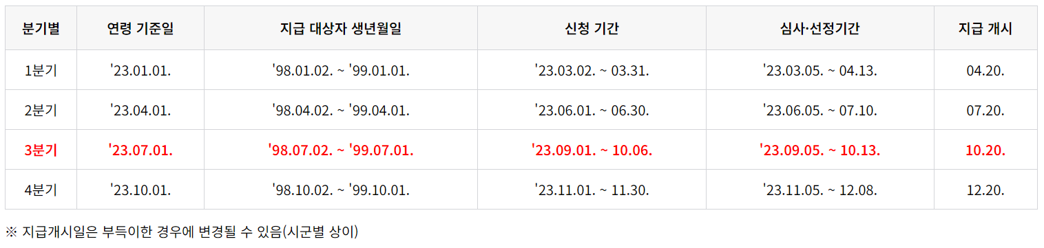 * 본인이 몇 분기부터 지급대상자인지 확인하기