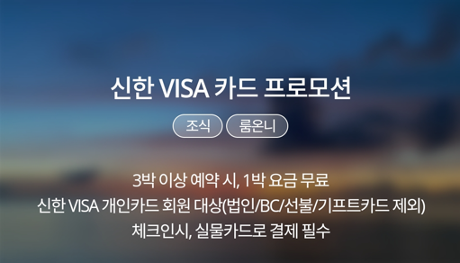 2) 반드시 본 프로모션이 적용되는 신한비자카드로 예약 및 결제해야 혜택 적용 가능