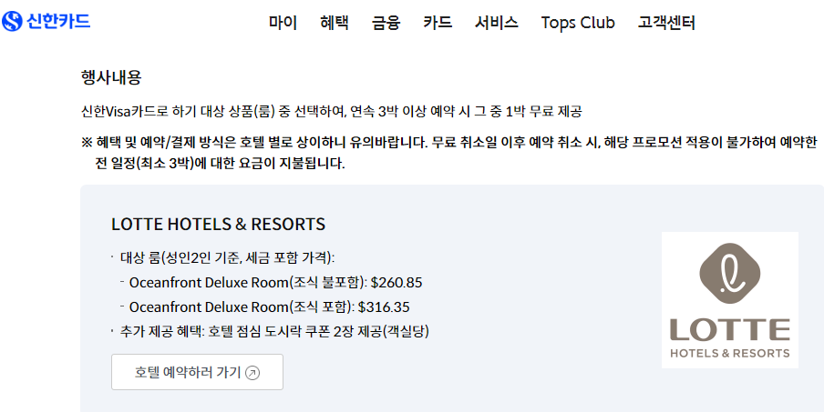 2) 반드시 본 프로모션이 적용되는 신한비자카드로 예약 및 결제해야 혜택 적용 가능
