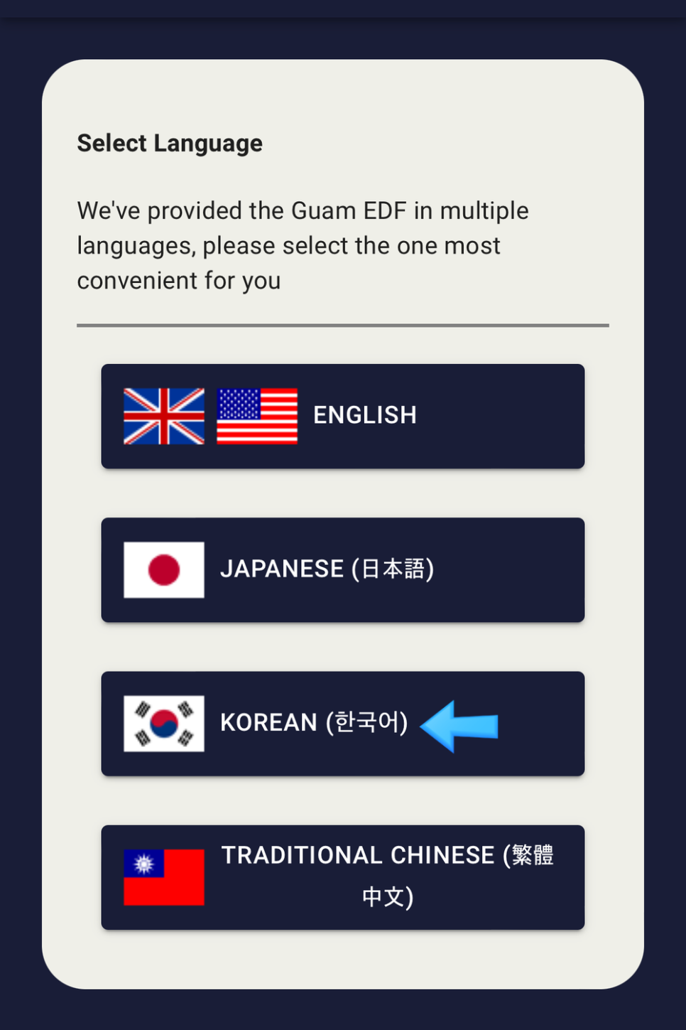 1) 괌 관세청 접속 후 언어 변경 (한국어 선택)