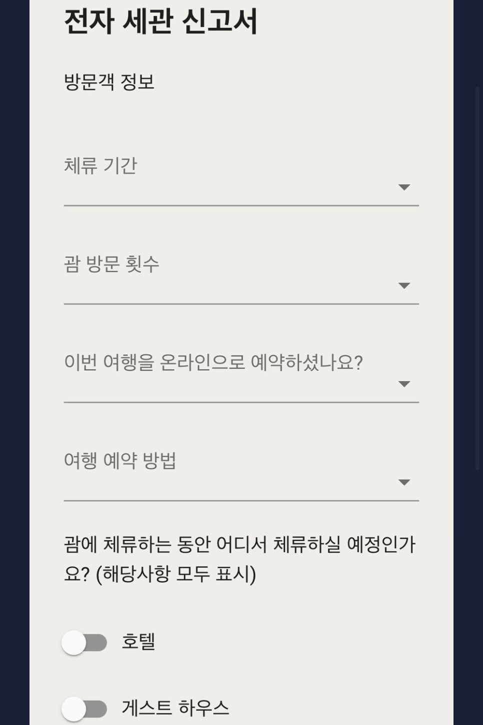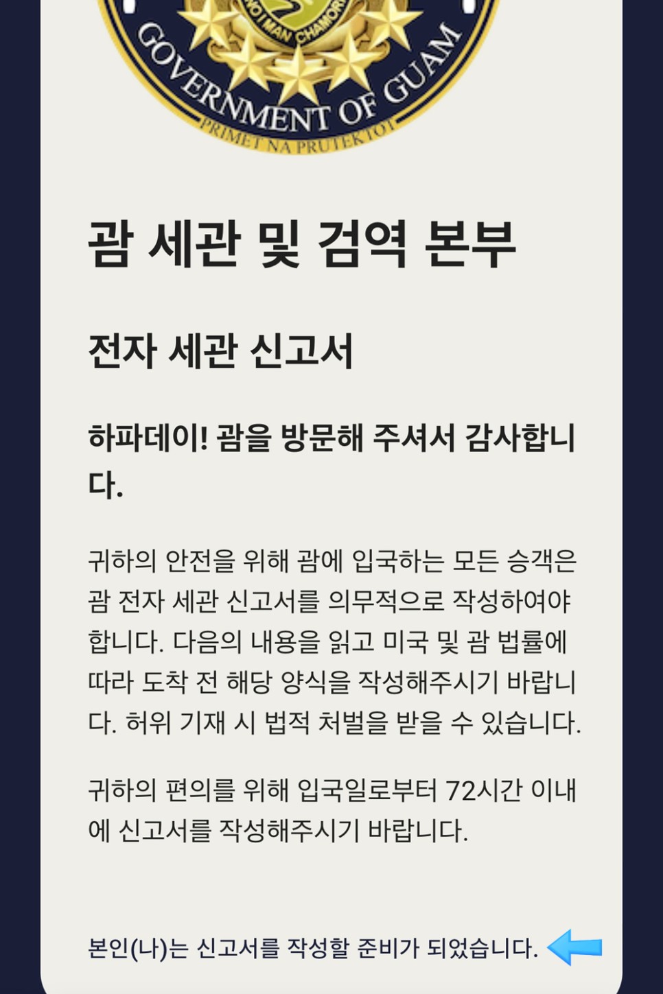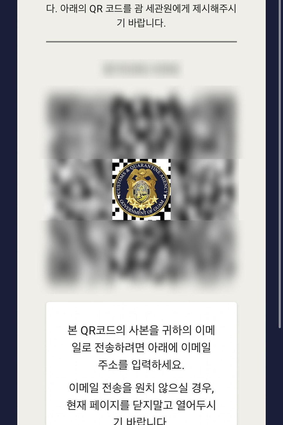 미리 괌 전자세관신고서를 작성해서 QR코드를 받아놓으시면 기내에서도 번거로움이 없고, 입국신고서를 기내에서 종이로 작성한 분들보다 훨씬 빠르게 입국수속을 마칠 수 있기에 괌 여행준비물로 필수라고 생각됩니다.
