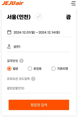 1. 제주항공 홈페이지 또는 앱에서 '괌 50% 할인 프로모션'을 접속합니다.