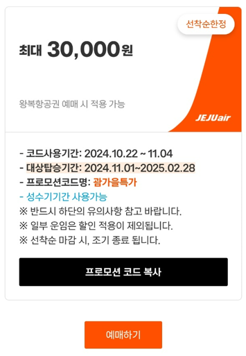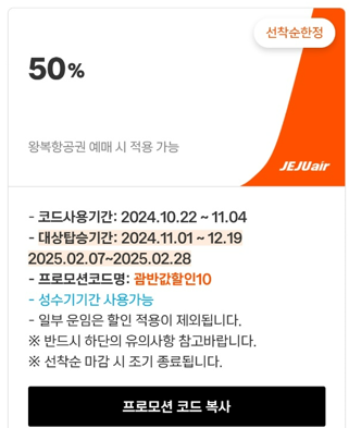 ※ 제주항공 프로모션 코드 & 신규회원 가입 혜택 중복 적용 가능 합니다.