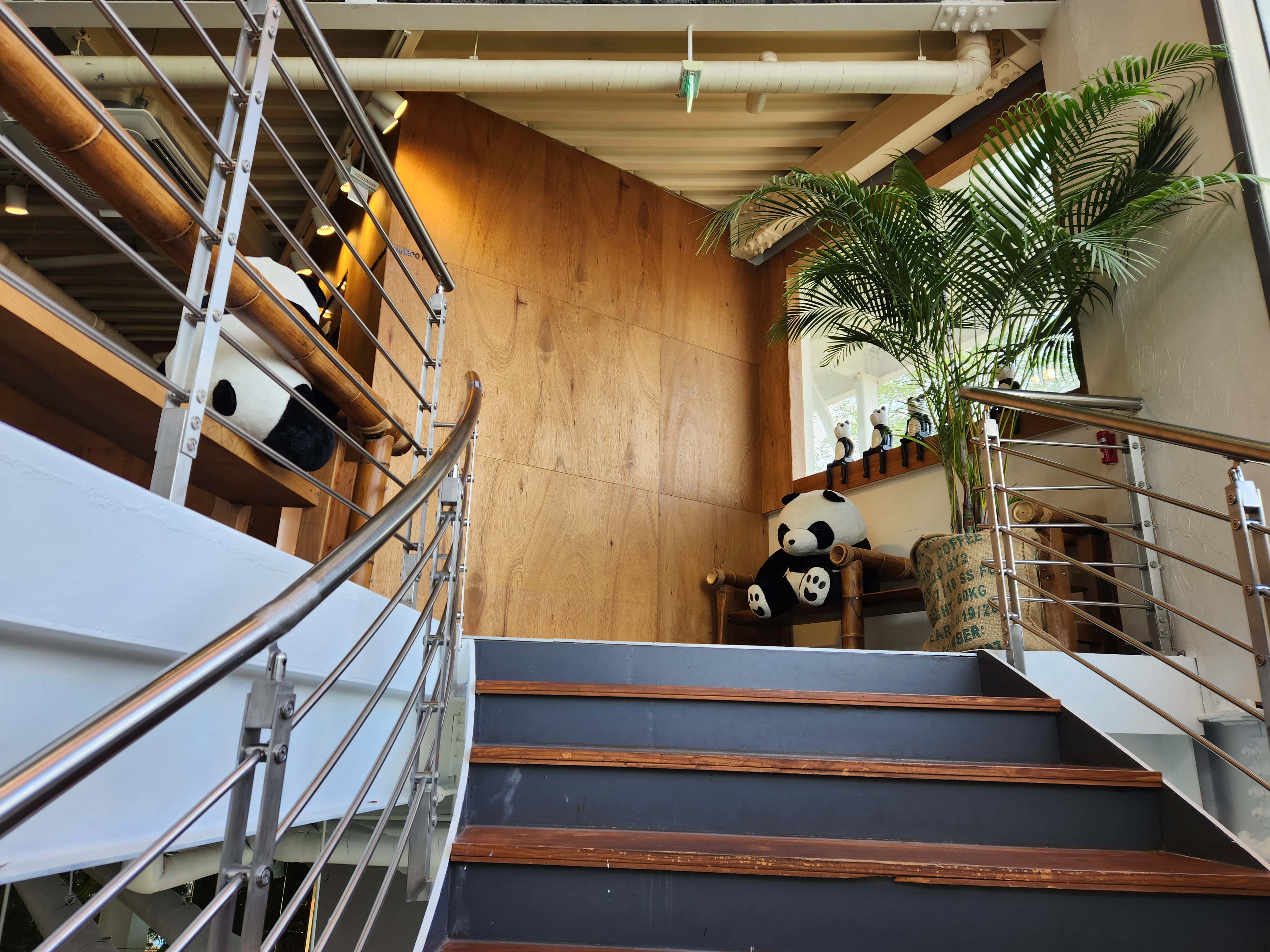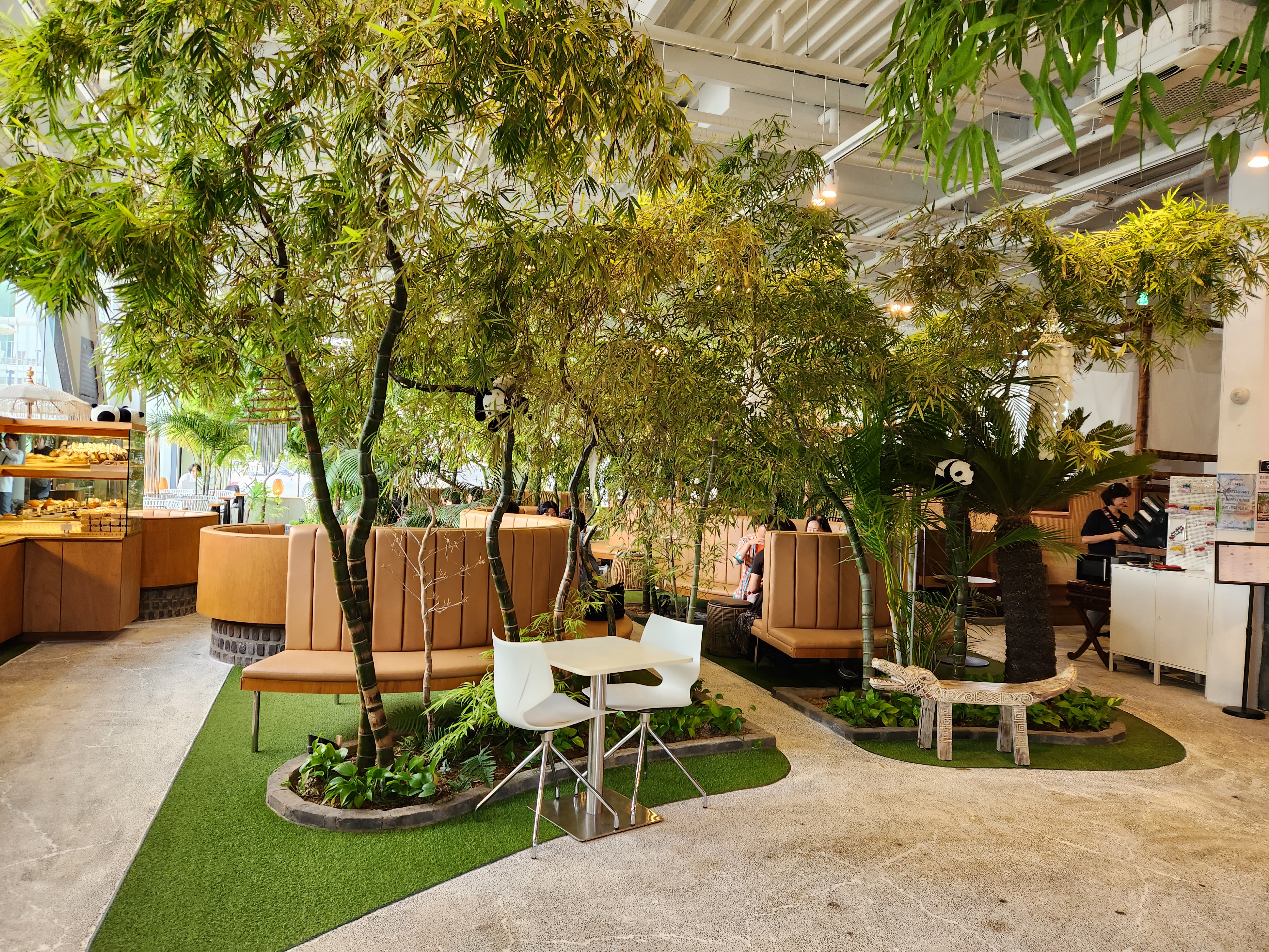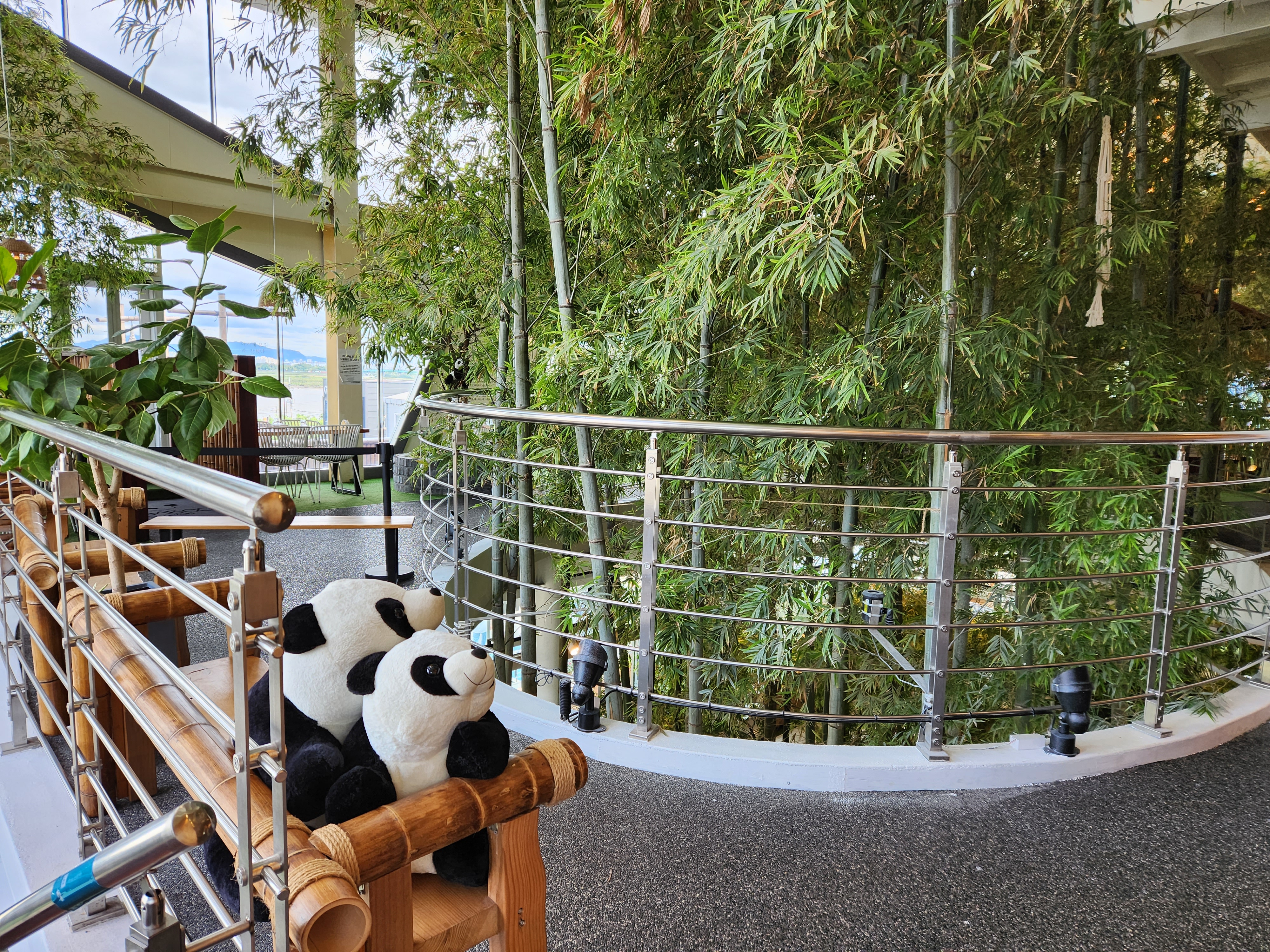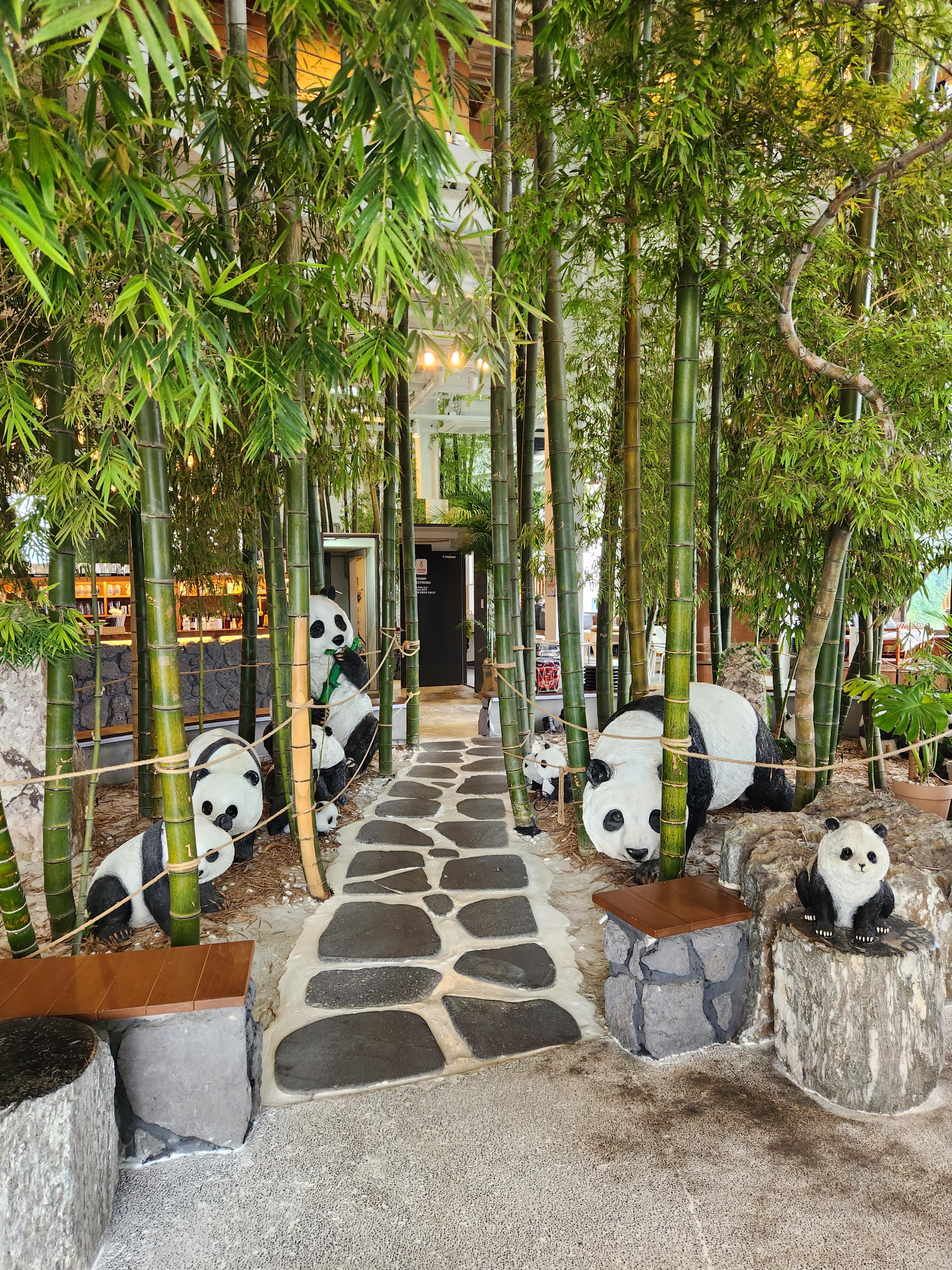 뱀부 포레스트는 실내에 1층부터 3층까지 진짜 대나무와 야자수로 인해 피톤치드가 가득한 대형 카페입니다. 그리고 요즘 판다 푸바오가 세간의 화재인데, 여기 뱀부 포레스트에서는 대나무와 함께 컨셉으로 한 공간 곳곳에 판다인형을 볼 수 있으며 마치 판다월드에 온듯한 신선함도 느끼실 수 있습니다.
