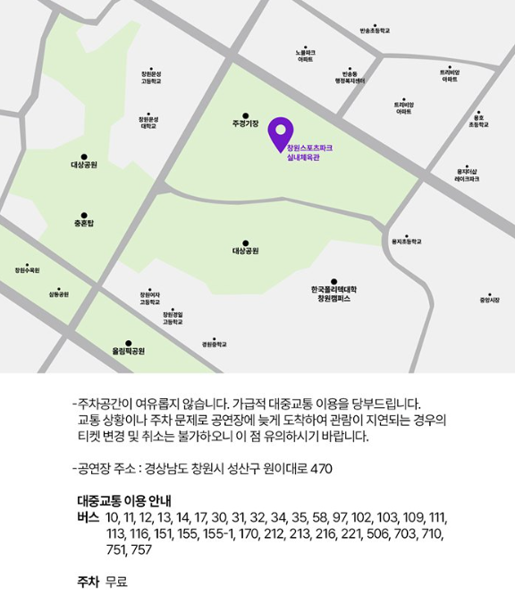 - 공연장소 : 창원 스포츠파크 실내체육관