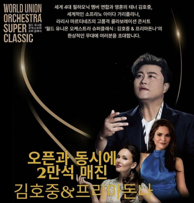 20일 공연계에 따르면 오는 5월 23~24일 서울 송파구 올림픽공원 KSPO돔(올림픽 체조경기장)에서 열리는 ‘월드 유니온 오케스트라 슈퍼 클래식 : 김호중 앤 프리마돈나’는 예정대로 열립니다.