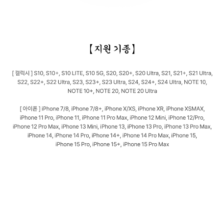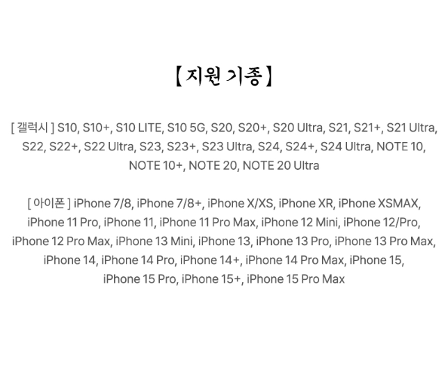 - 출시 기종 : 갤럭시 S10 ~ S24 Ultra, 아이폰 7/8 ~아이폰 15 pro max
