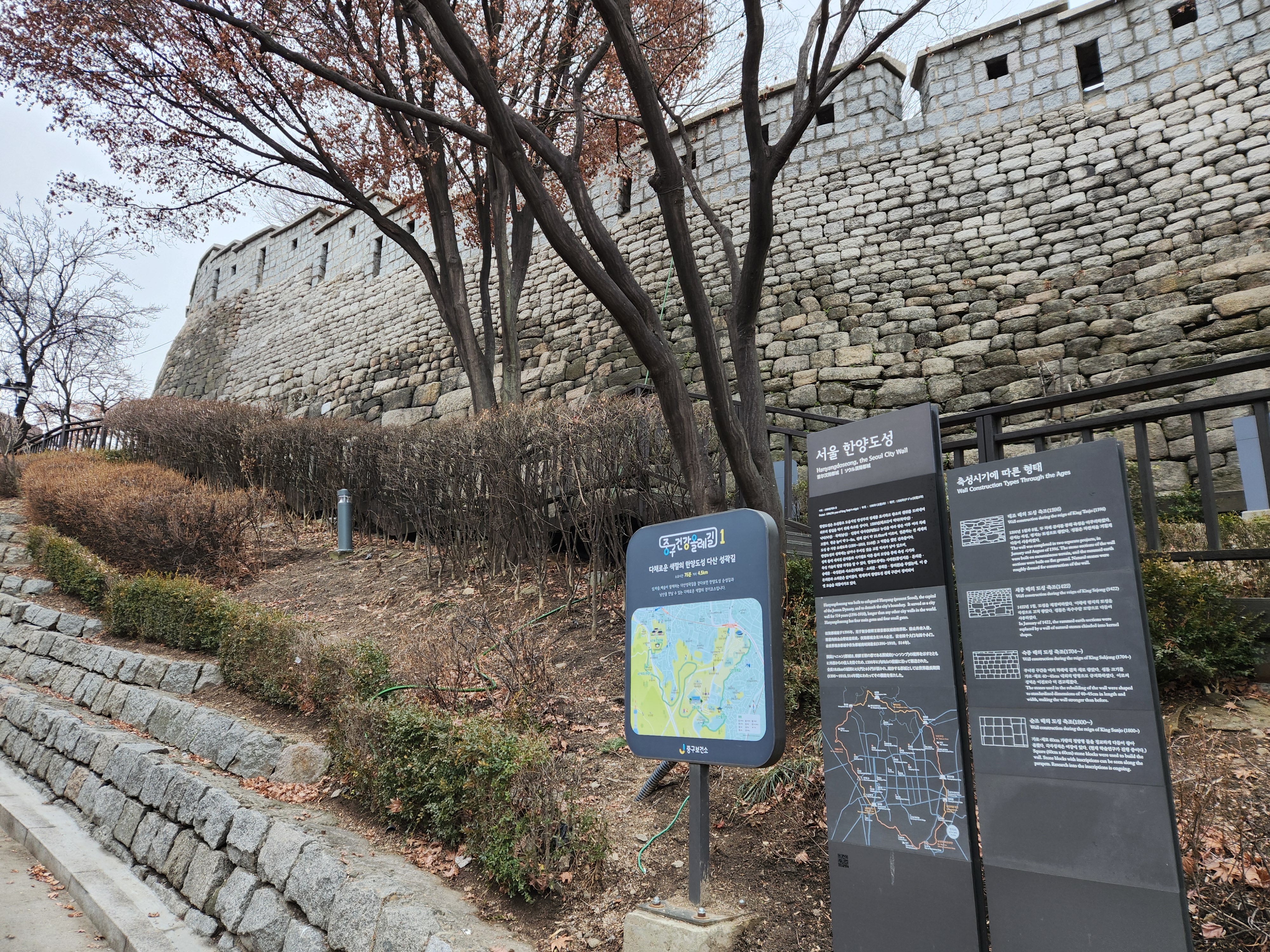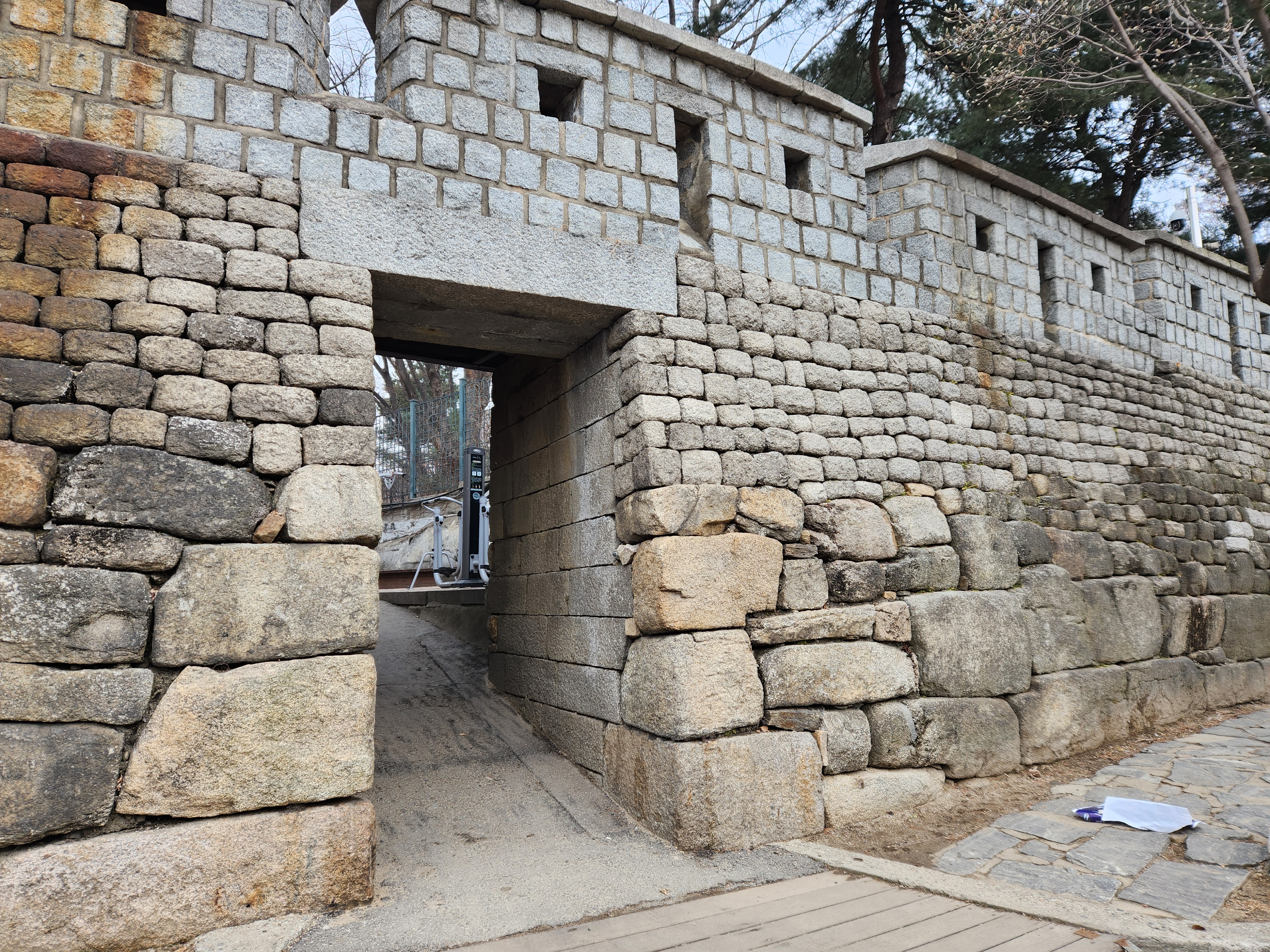 그리고 바로 위쪽에 주연배우들이 집 앞에서 대화를 나누는 신에서 자주 보였던 성곽 암문이 나오며, 암문을 통과하면 운동기구와 성곽 상단과 연결된 계단으로 성곽 윗길을 걸을 수 있게 됩니다.