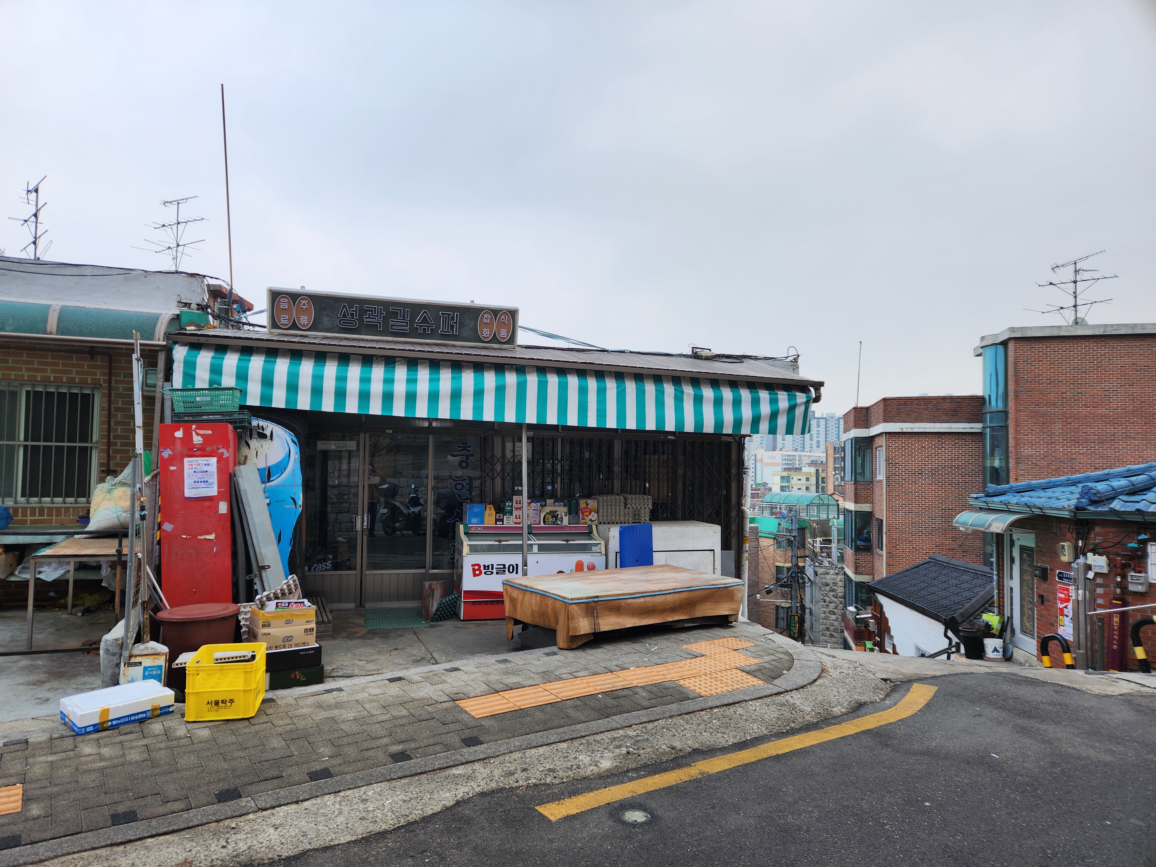 그리고 카페 건물에서 30m 전방 좌측에는 박신혜와 박형식의 집앞 밤데이트를 했었던 성곽길 슈퍼가 있습니다. 지금도 동일한 간판으로 영업을 하고 있는 것을 확인할 수 있었습니다.