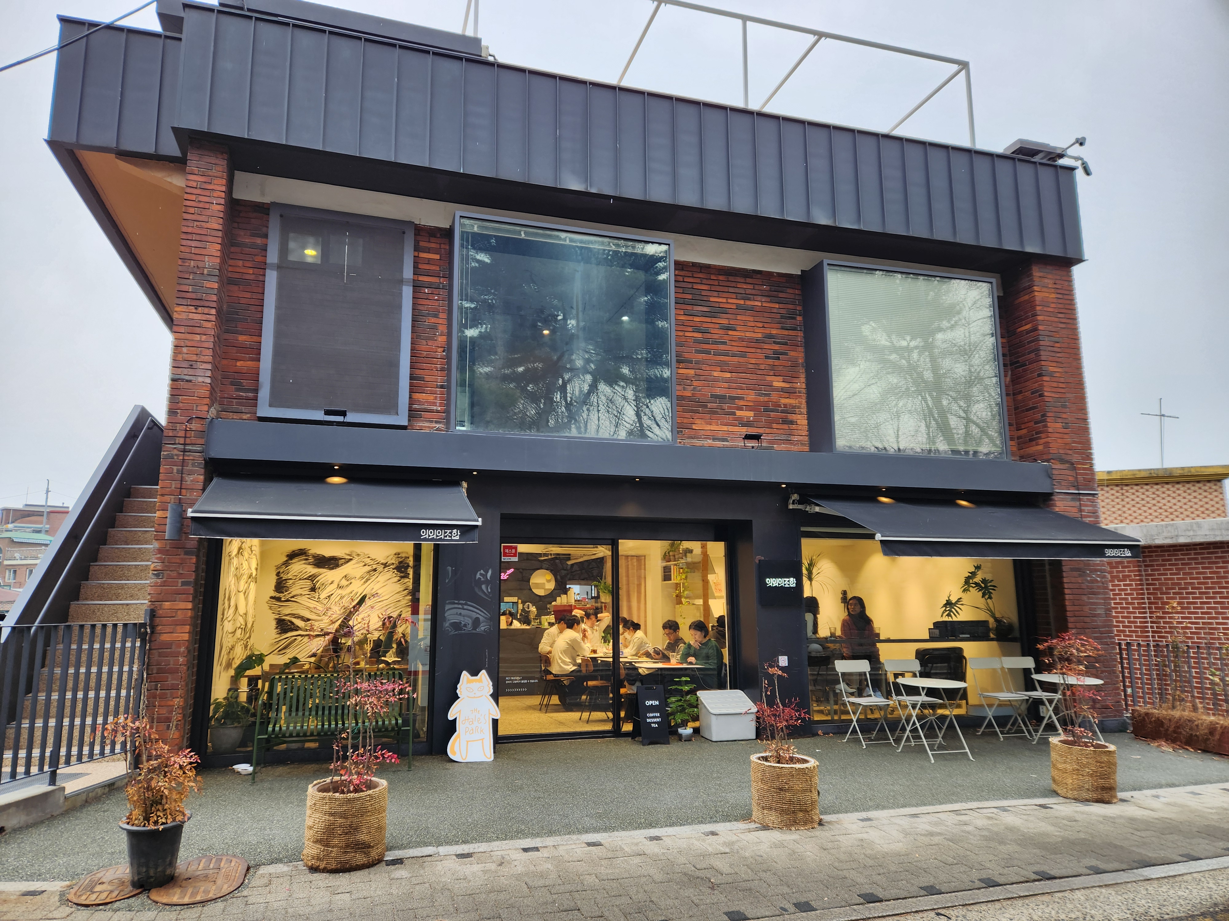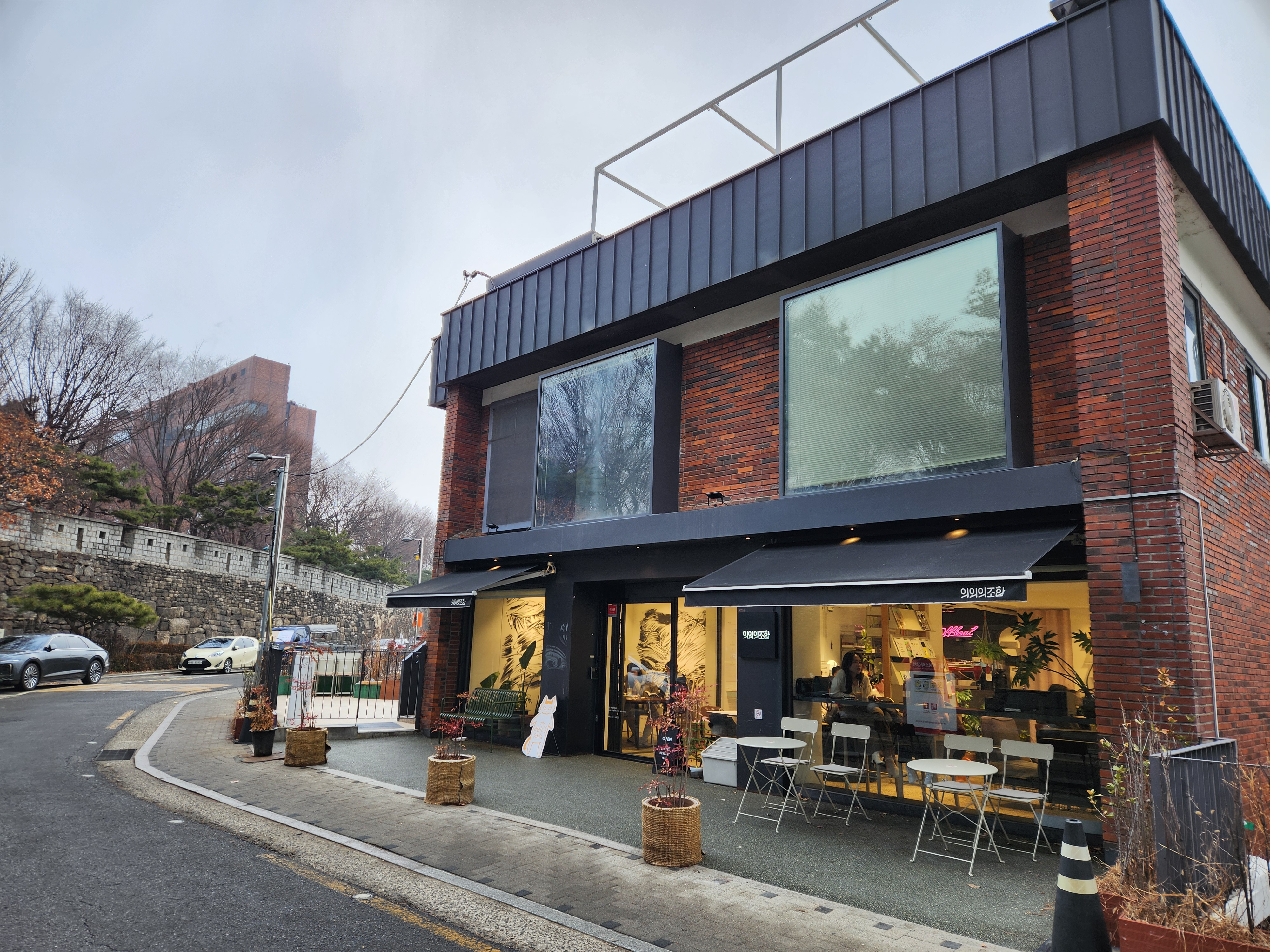 한양도성 다산성곽길 진입로에서 대략 15분 정도 걷다 보면, "의외의 조합"이라는 카페 건물을 만나게 됩니다. 지금처럼 카페 건물을 작년 드라마 촬영당시 박신혜의 집으로 부산원조밀면집으로 개조를 해서 촬영을 했었다고 합니다.