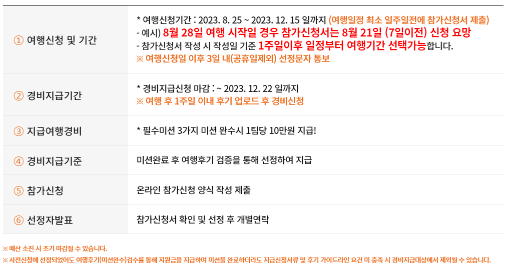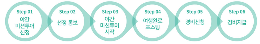 3)보상지급 : 필수미션완료 및 여행후기를 검증을 통해 선정 지급