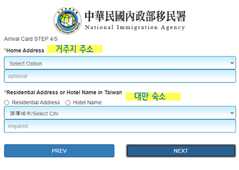 5) 거주정보 입력 ( 국내 집 주소, 대만 숙소 주소 입력 등)