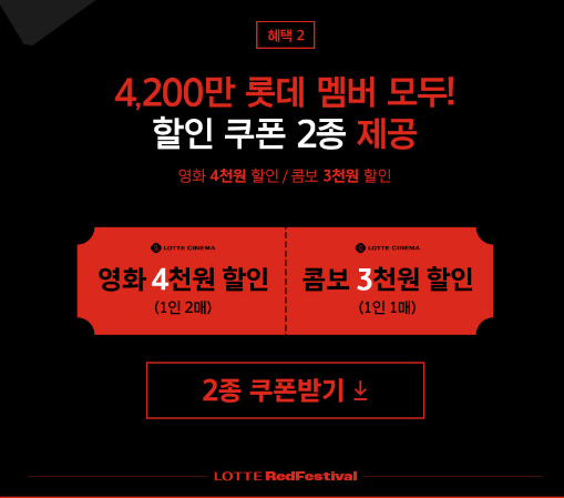 2) 할인 쿠폰 제공 : 영화 4,000원 할인, 콤보 3,000원 할인 (상시 제공)