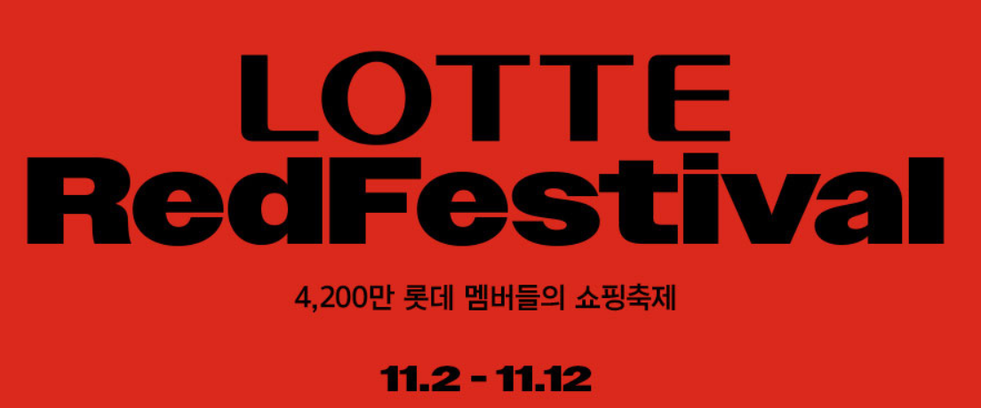 롯데그룹 유통 계열사의 통합 쇼핑 행사 ‘롯데레드페스티벌’은 롯데 11개 계열사가 함께하는 쇼핑 축제입니다. 11월 2일부터 11월 12일까지 11일간 다양한 상품과 할인 그리고 이벤트까지 최상