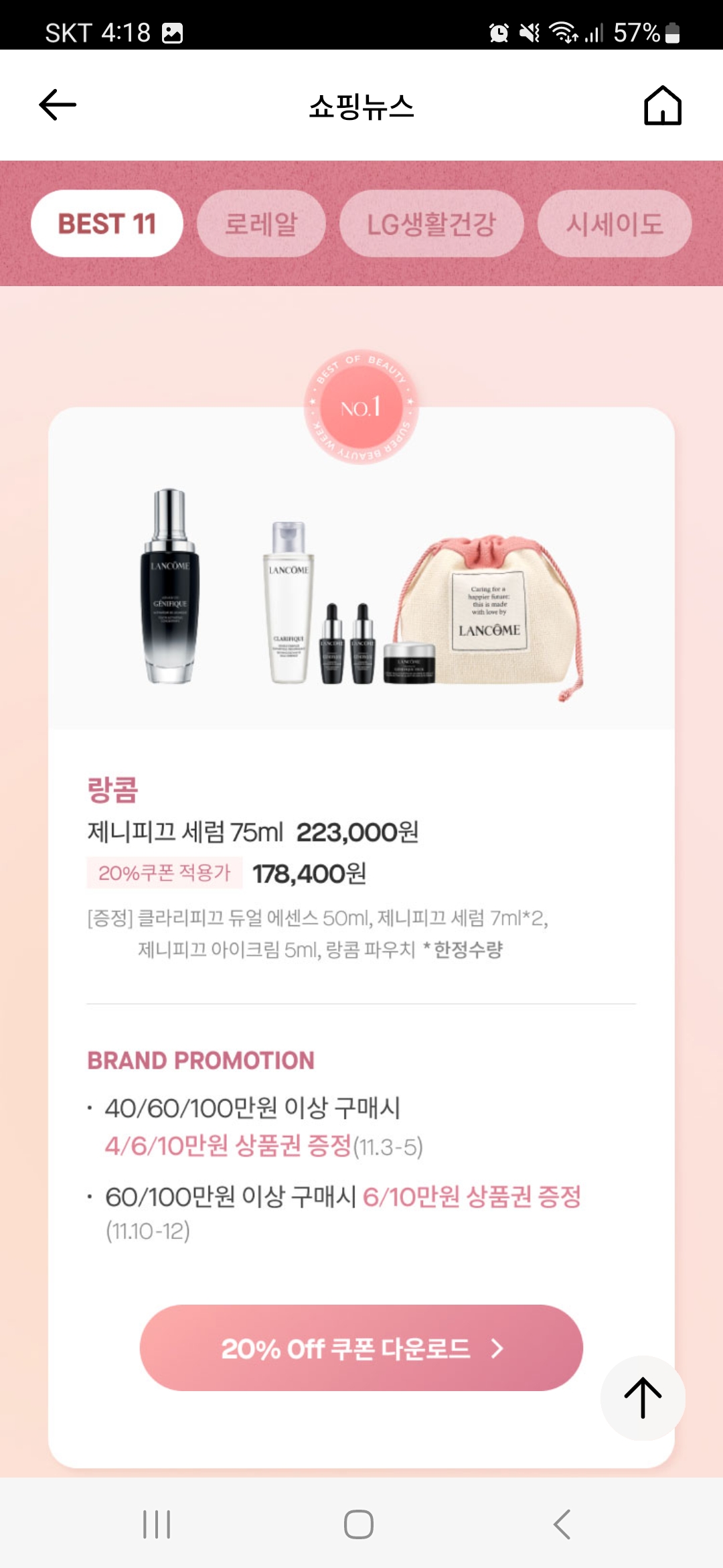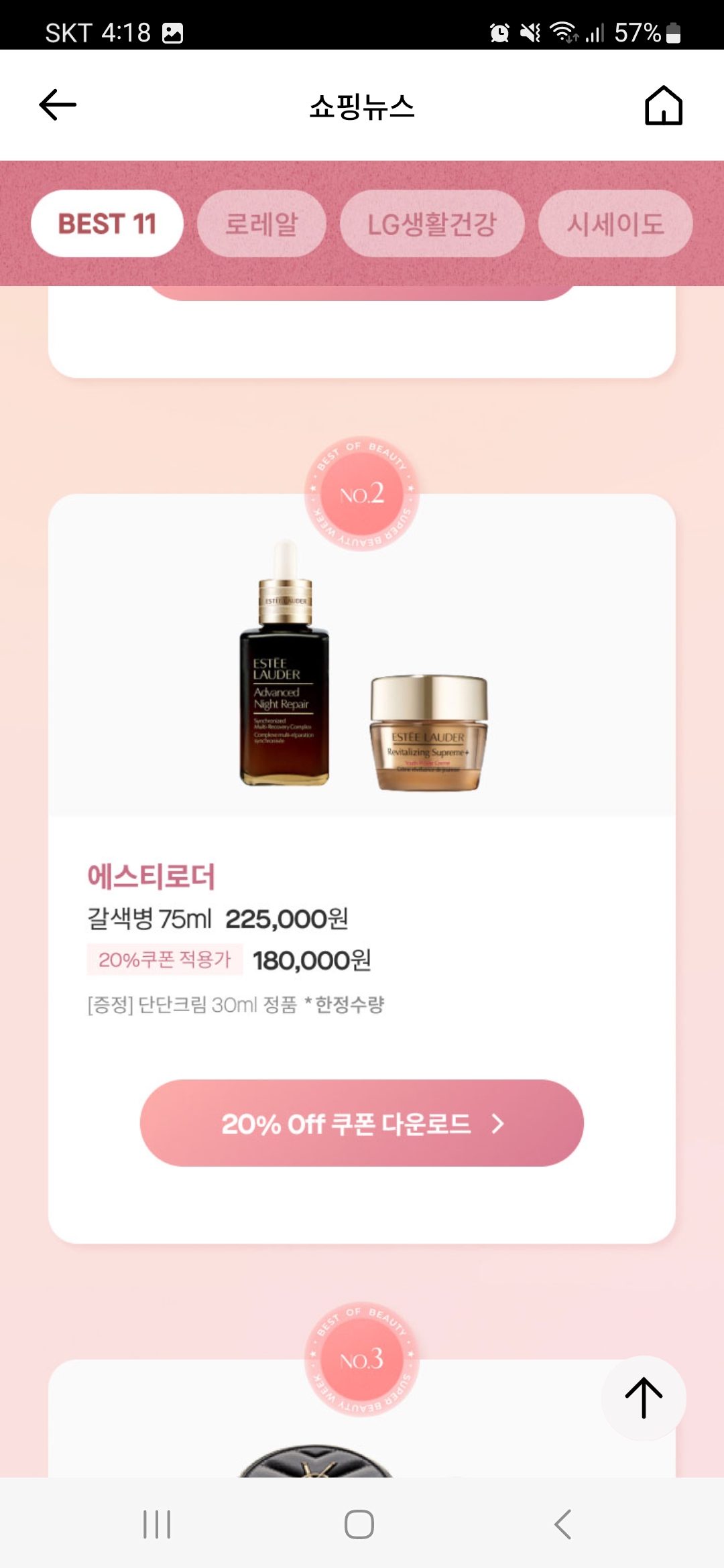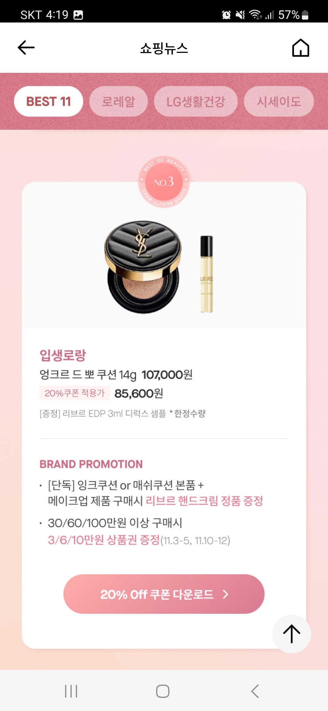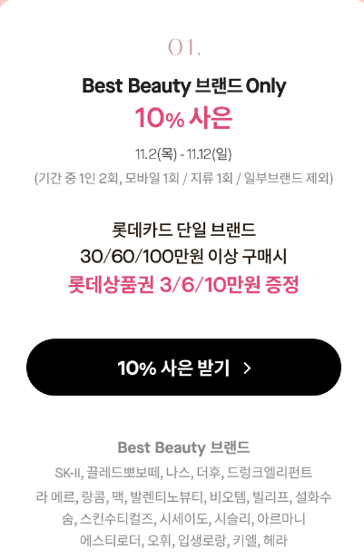 4) 베스트 뷰티 브랜드 10% 사은 할인