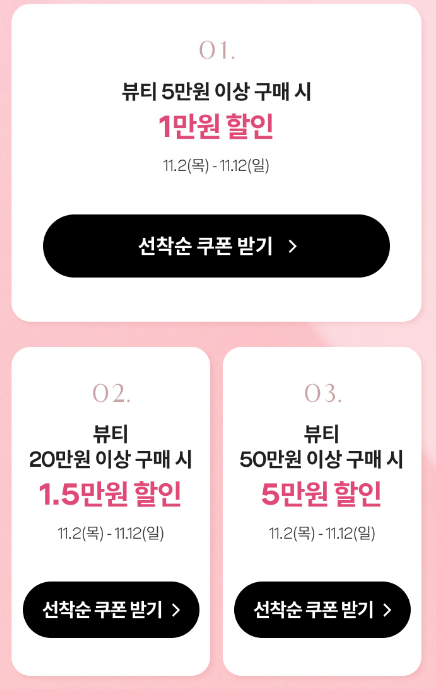 3) 뷰티 50만 원 이상 구매 시 5만 원 할인쿠폰