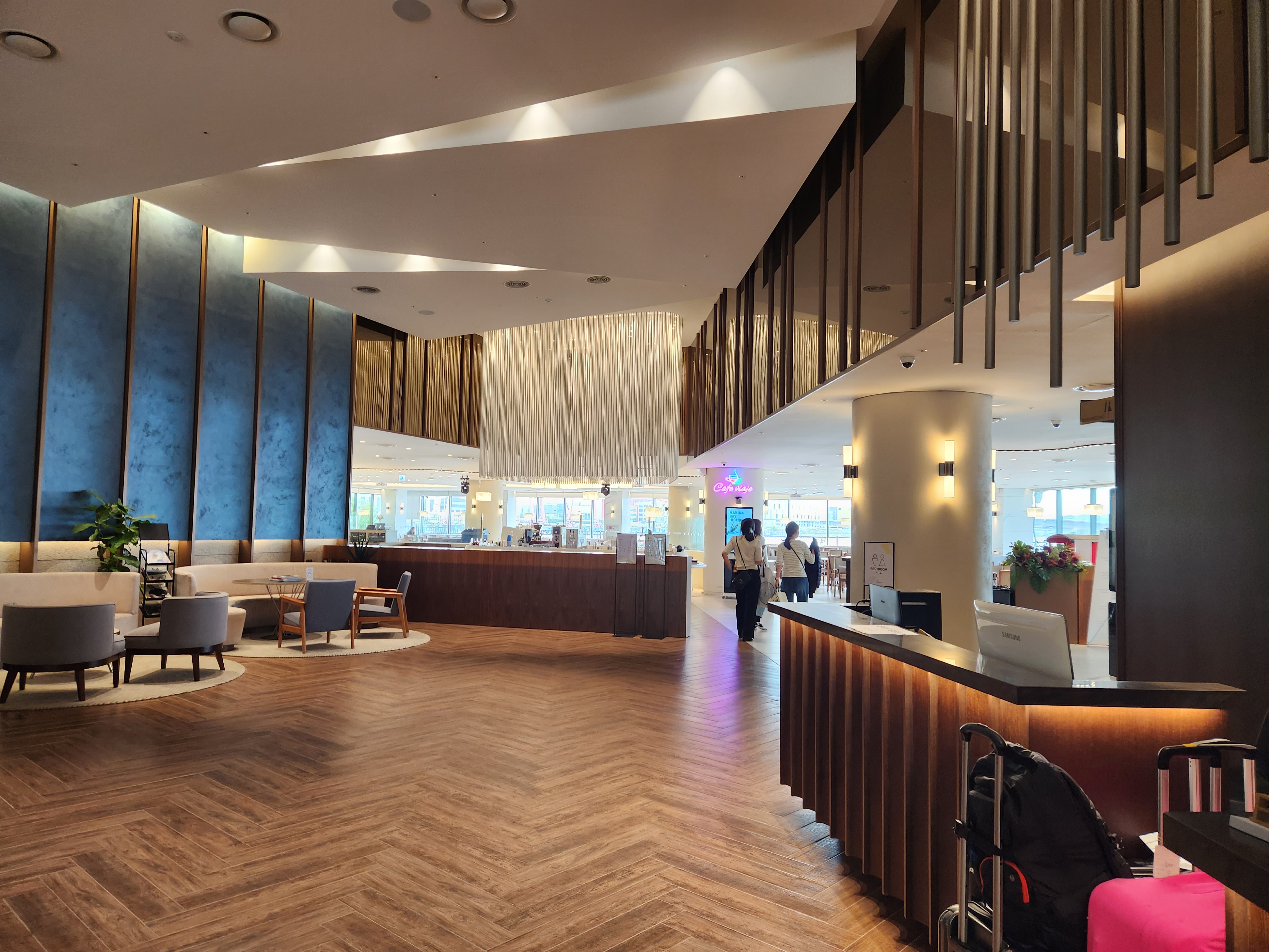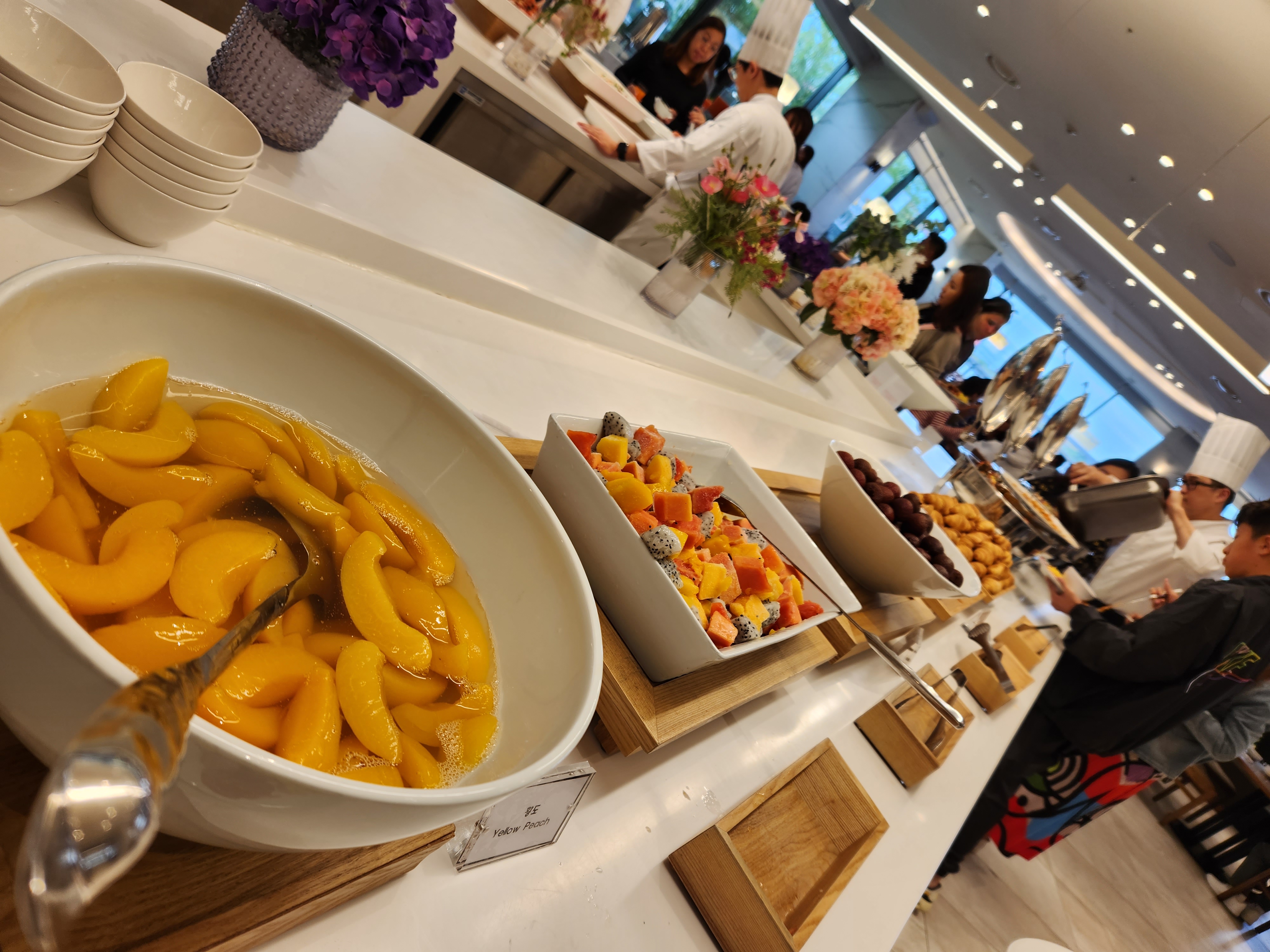 조식은 06:30~10:00까지이며, 공휴일 주말에는 10:30까지입니다. 1층 VIAJE 레스토랑에서 쿠폰 제시 후 입장을 하면 됩니다. 로비에 비치된 안내문구에서는 1부(06:30~08:20), 2부(08:40~10:00/10:30) 혼잡시간대 안내는 1부가 가장 혼잡한 시간대라고 안내가 되어 있습니다. 하지만, 체크인 시 문의를 하니, 1,2부 브레이킹 타임 없이 연결해서 입장가능하다고 하였습니다. 다음날 07:30분에 기상을 하여 산책 겸 로비로 내려가보았습니다. 보통 대부분의 호텔은 2부 타임이 가장 혼잡한 타임인데, 여기는 안내되어 있는 것처럼 이른 시간부터 너무나 많은 사람들이 로비와 조식 식당을 이용하고 있는 것을 보고 솔직히 많이 놀랐습니다. 무엇보다 호텔의 입장에서는 다행스럽게 해외 단체관광객들이 저녁시간대 많이 들어와서 이른시간부터 조식 식당이 붐비는 것을 알 수 있었습니다. 중국, 말레이시아, 베트남 등 단체관광객들이 빠르게 조식 후 단체 버스 탑승 후 떠나는 붐비는 시간대였습니다.