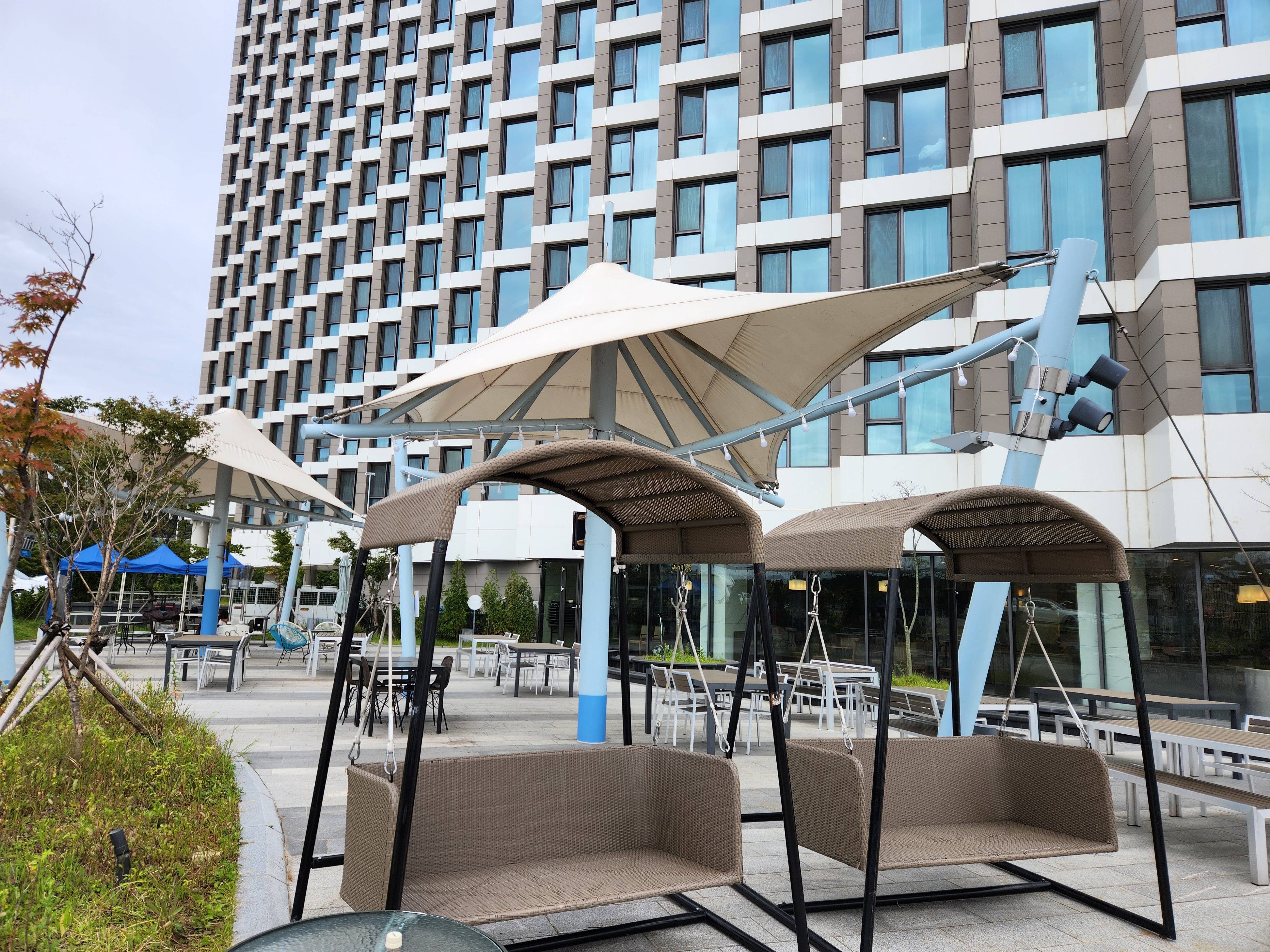 인근의 현대프리미엄아웃렛은 도보로 직접 걸어가 보니 10~15분 이면 도착가능합니다. 그리고 호텔에서 무료셔틀버스도 운행하고 있습니다. 계절 상관없이 이용할 수 있는 인피니티 실내 풀은 연인이나 가족분들에게도 매력적인 것 같습니다. 김. 현. 아 에서 쇼핑도 하고, 물놀이 후 편안한 투숙으로 하루정도 힐링하기에 좋은 가성비 좋은 호텔로 추천드립니다.
