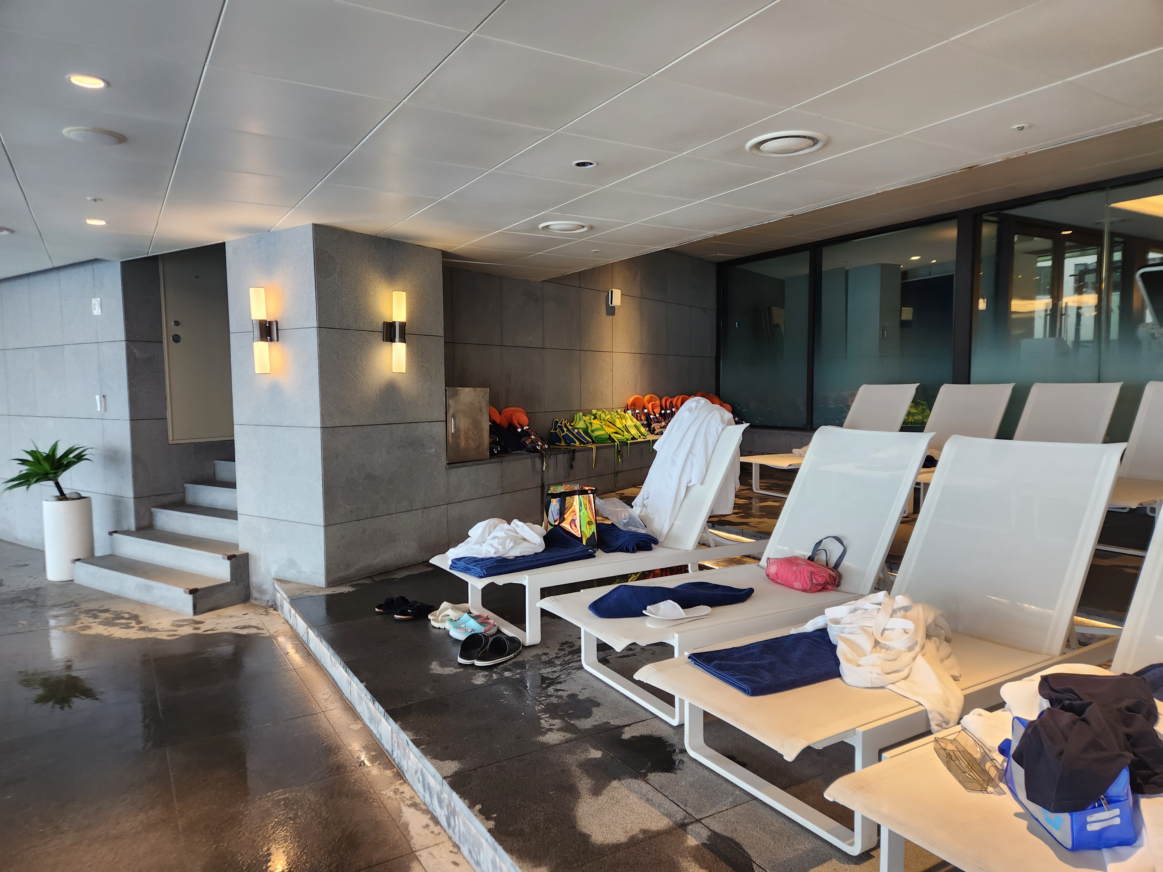 참고로 객실에서 수영복을 입고 객실 가운을 걸치고 수영장 입장을 하는 편이 편한 것 같습니다.
