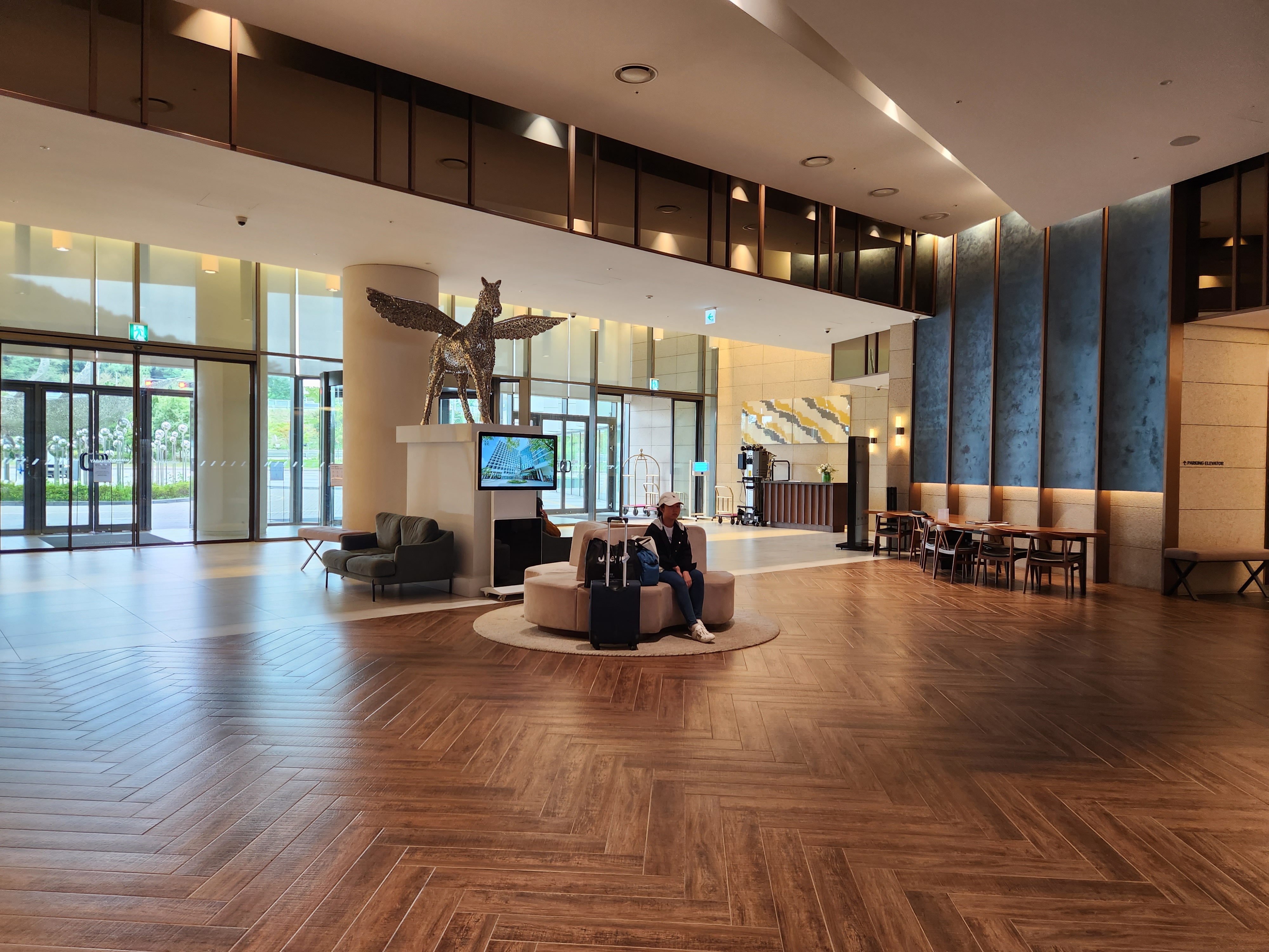 호텔 체크인은 사전에 15시부터 가능하며, 참고로 체크아웃은 11시까지입니다. 서울 성북구 자택에서 13시경 출발하여 14시가 조금 안 된 시간 호텔에 도착하였습니다. 주차장은 지하 1층~3층까지이며, 호텔 메인 출입문 우측 편 주차장진입로를 이용하여 지하 1층에 간편히 주차를 하였습니다. 주차장과 로비 전용 엘리베이터를 이용하여 1층 로비로 올라와 가족들은 로비 대기 의자에 착석한 후 1시간가량 이른 시간이었지만, 프런트로 바로 방문하였습니다.