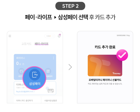 2) 페이.라이프=> 삼서페이 선택 후 카드 추가