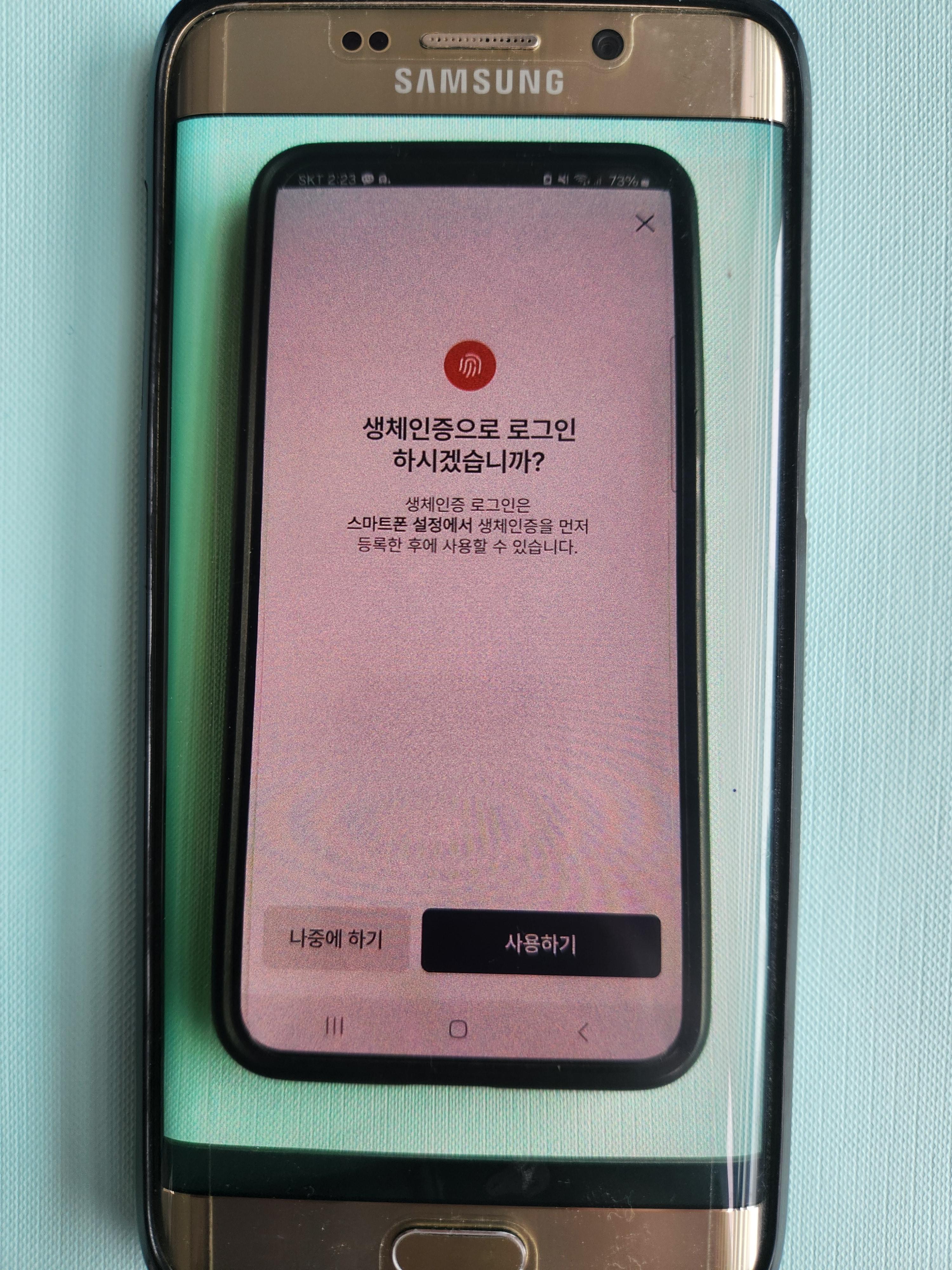 7) 생체인증 로그인 방법선택은 필수가 아니라, 나중에 하기로 생략합니다.(비밀번호 입력없이 얼굴인증이 편하신 분들은 생체인증 선택을 하시면 됩니다.)