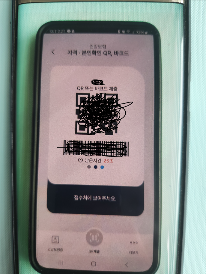 9) 해당 사진의 검은 네모칸에 QR 코드가 나오므로 병의원이나 약국 방문시 접수처에 이를 보여주면 신분증 대용으로 사용이 가능합니다.