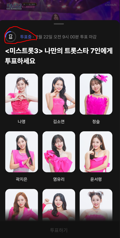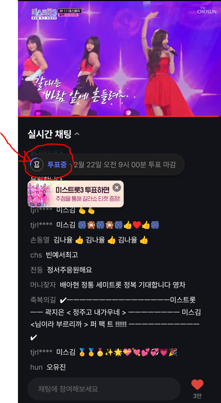 2. 미스트롯3 대국민 응원투표 예시