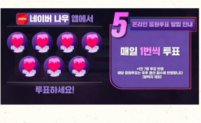 => 대국민 응원 투표는 네이버 NOW 앱을 통해 진행됩니다.
