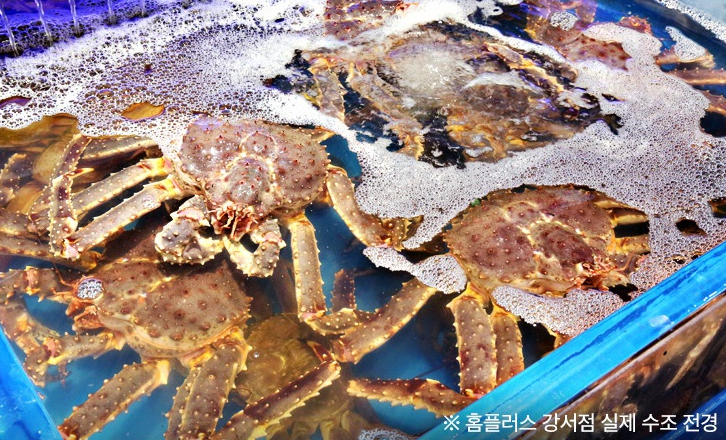 2)러시아 차가운 바다에서 통발로 잡은 킹크랩을 국내 동해안에 도착 직후 활어차에 담아 홈플러스 매장까지 직배송하여 매장 내 수조 속에 바로 보관 판매가 됩니다.