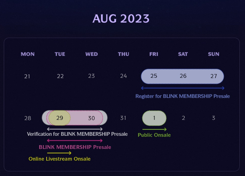 1) 선예매는 BLINK MEMBERSHIP(GLOBAL) 회원만 예매 가능.