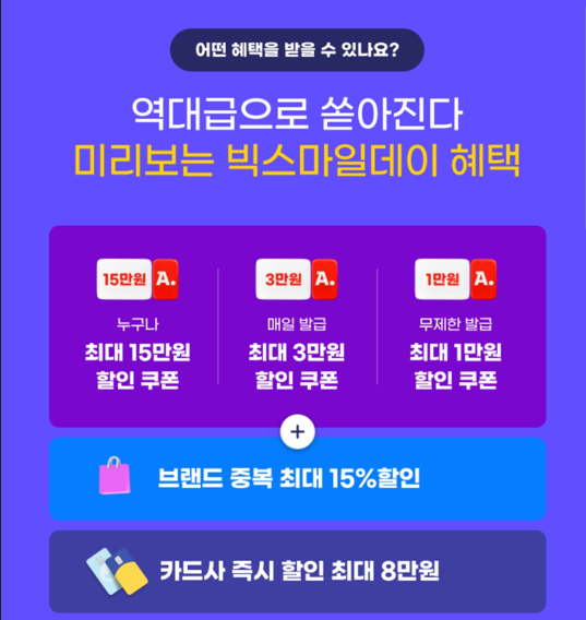 2) 7만 원 이상 구매 시 최대 15만 원까지 할인되는 고액 할인쿠폰도 제공합니다..
