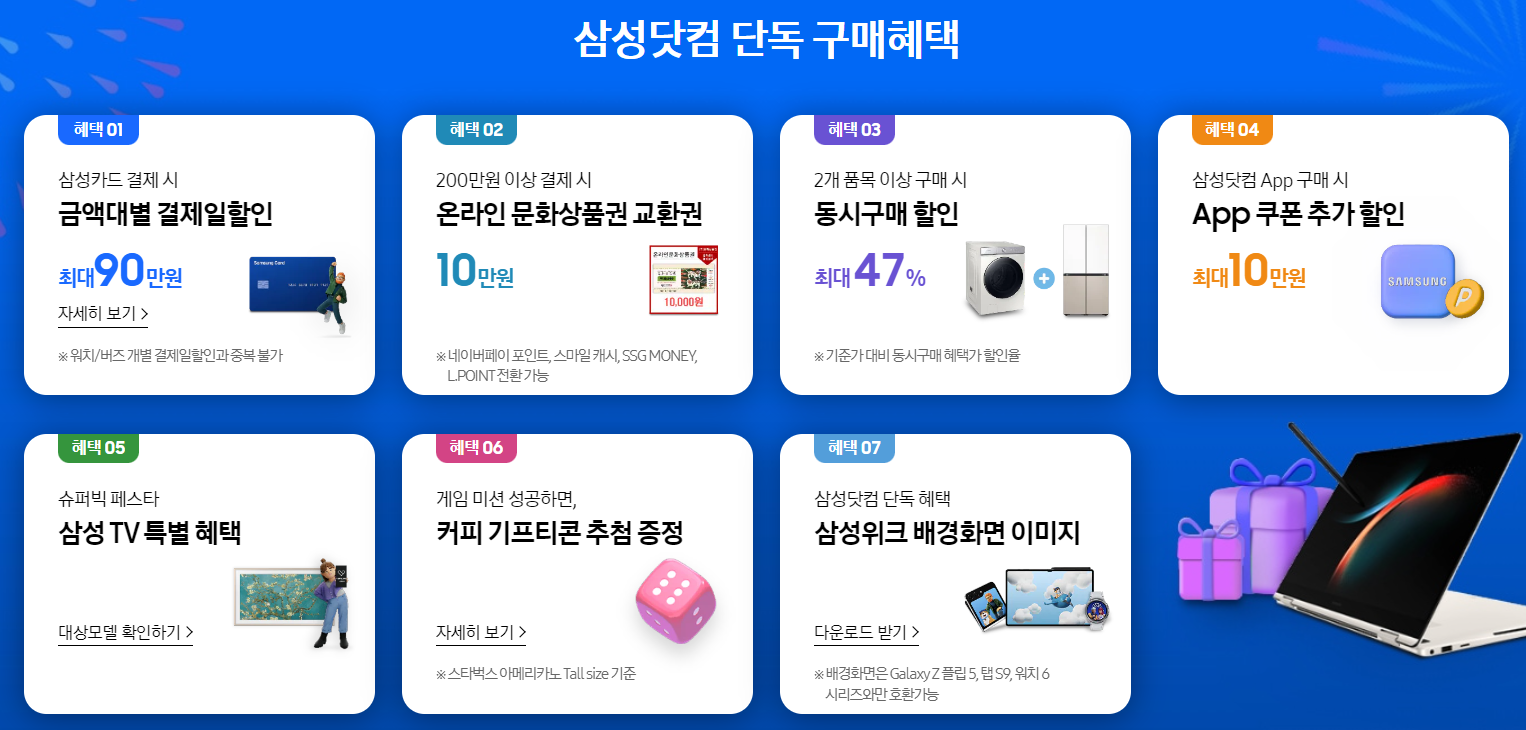 - 삼성카드로 결제 시 최대 90만 원의 할인