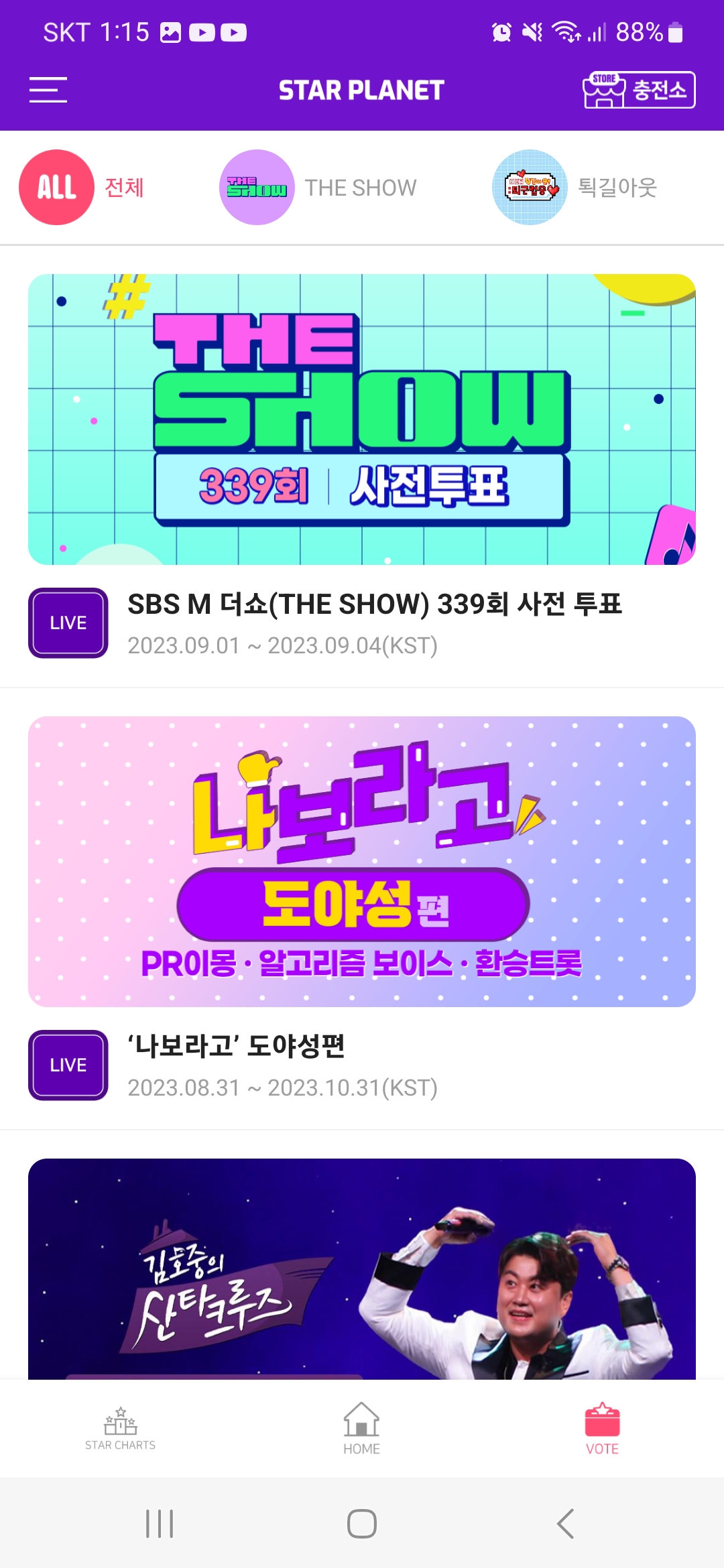 - 스타플래닛 모바일 앱 예약 방법 : 스타플래닛 앱 설치 - 회원가입 및 로그인 - 홈화면 하단 오른쪽에 VOTE 클릭 서울뮤직페스티벌 예약 공지 뜨면 클릭하고 예약