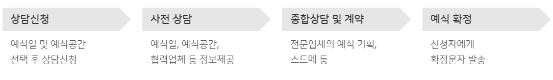 - 공간에 따라 여건이 상이하므로 사전상담 및 결혼 협력업체와 충분한 상담 후 나만의 결혼식 신청