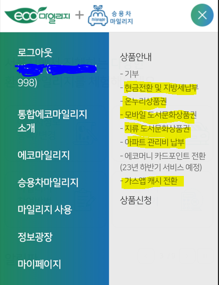 아파트 관리비 납부, 가스앱 캐시 전환, 에코머니 카드포인트 전환(23년 하반기 서비스 예정) 등으로 전환 혜택을 받으실     수 있습니다.