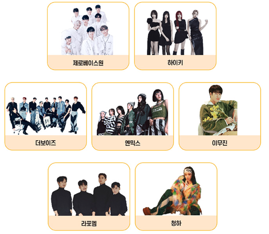 - 출연가수 : 청하, 이무진, 제로베이스원, 하이키, 더보이즈, 엔믹스, 라포엠