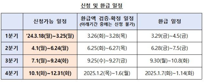 신청 및 환급일정