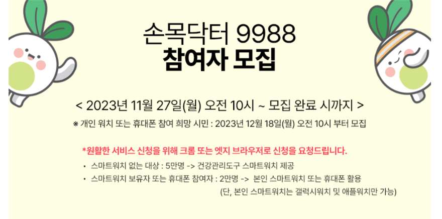 - 신청방법 : 손목닥터9988 홈페이지에서 선착순으로 모집