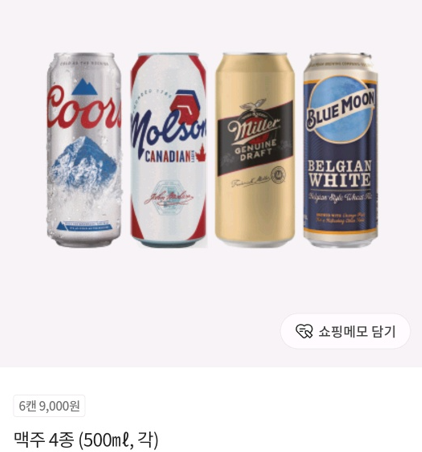 1) 상품명: 맥주 4종(500ml) 6캔 9,000원
