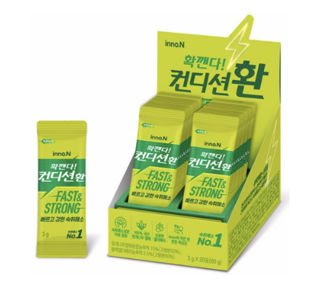 기존의 드링크형과 환 제품이 70%이상의 비중을 차지하며, 2~30대 층에서 인기가 오르고 있는 젤리 제형인 스틱형 제품은 컨디션맛과 그린애플 맛에 신제품으로 자두맛과 망고맛이 출시가 되었습니다. 컨디션의 제품은 한국콜마 계열사 HK이노엔의 제품입니다.