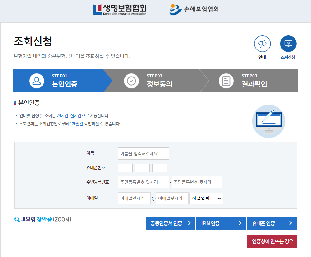 생명보험협회와 손해보험협회에서 운영하는 '내보험찾아줌' 서비스는 보험금을 편리하고 신속하게 찾아갈 수 있는 간편 청구 시스템입니다.