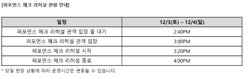 - 공연기간 : 2023년 12월 02일(토), 3일(일) 오후 3시 20분