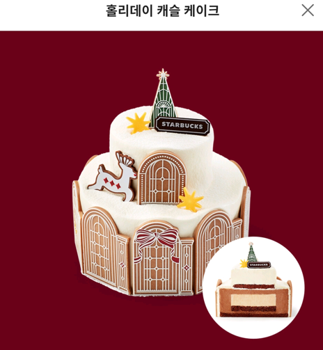 하겐다즈와 스타벅스가 함께 기획한 크리스마스 한정 상품이며, 바닐라, 초콜릿 2단으로 샌드 된 아이스크림 케이크이며, 함께 보냉백이 세트로 구성되었습니다.(지름 15cm / 중량 735g)
