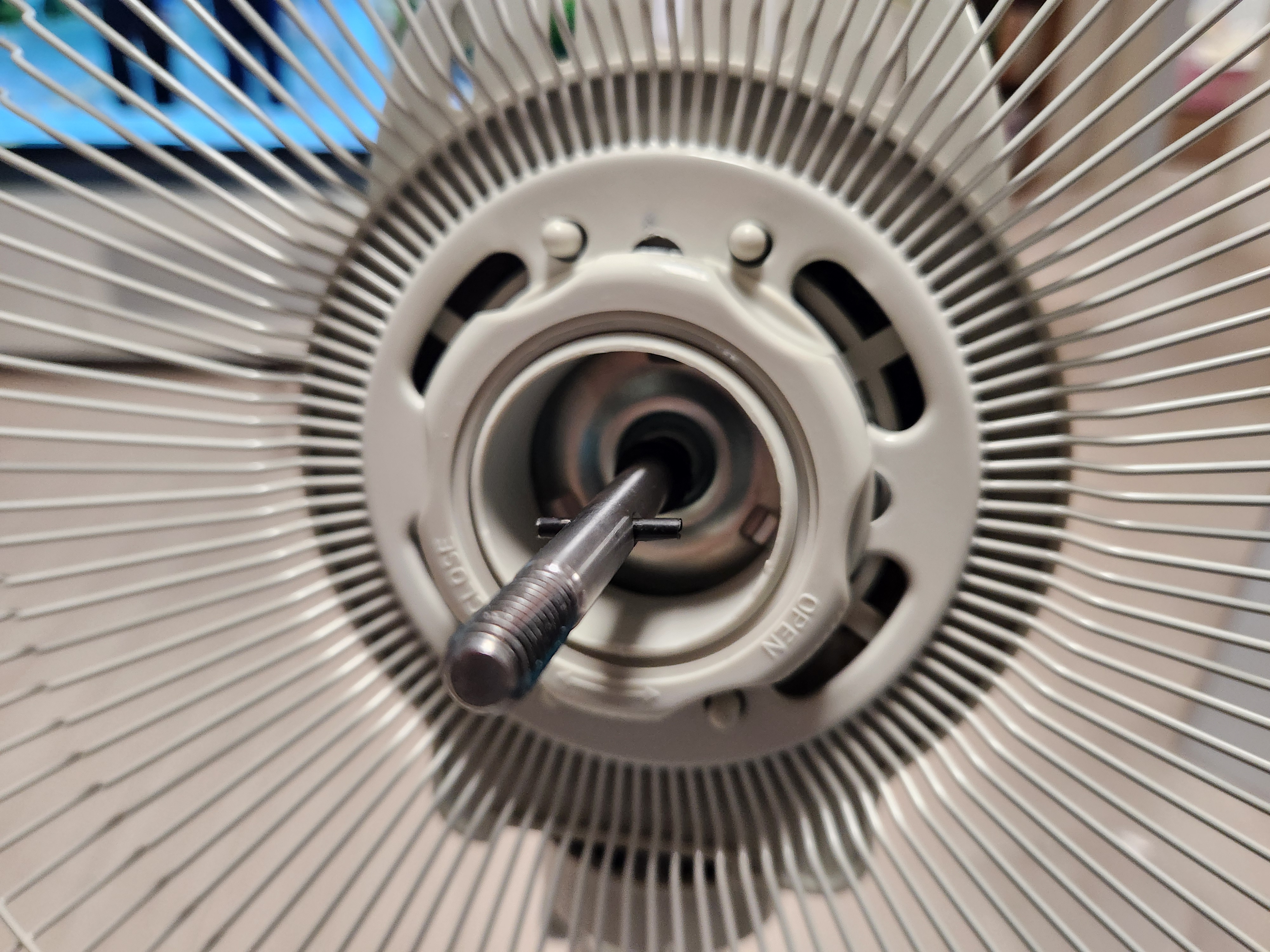 두 번째, 후망을 모터가 있는 머리에 고정 조립을 합니다. 모터 앞커버 2개의 돌출부와 후망 구멍이 일치하도록 끼워서 후망 고정 너트를 돌려 고정을 합니다. 그리고 낼개를 모터 샤프트에 끼워 힌들리지 않도록 고정을 합니다.