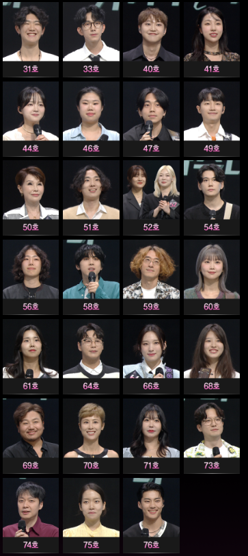 73호('슈퍼밴드3' 김광진), 74호(유정석), 75호(이유카), 76호(임팩트 박제업)