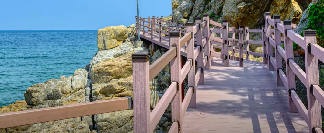 경북 울진군 해파랑길의 28코스는 삼척 동해 구간이며 울진군 북면에서 삼척시 원덕읍을 잇는 길이며, 총10.9km로 부구삼거리에서 출발해 도화동산과 갈령재를 지나 호산 버스터미널에 이르는 구간입니다. 코스의 초입 산책로가 부구터미널 뒤편 700m 지역에 해안가 절벽으로 이어진 아름다운 산책로를 만나실 수 있습니다.