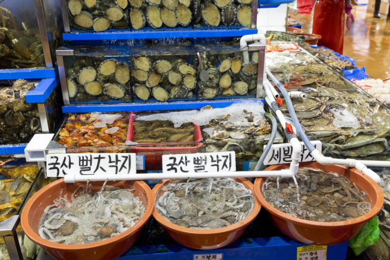 서울 노량진수산시장, 가락농수산물종합도매시장, 경기 구리농수산물도매시장, 부산 자갈치시장, 신동아수산물종합시장전북 군산수산물종합센터, 충남 대천항수산시장 ,제주 동문재래시장, 동문수산시장.