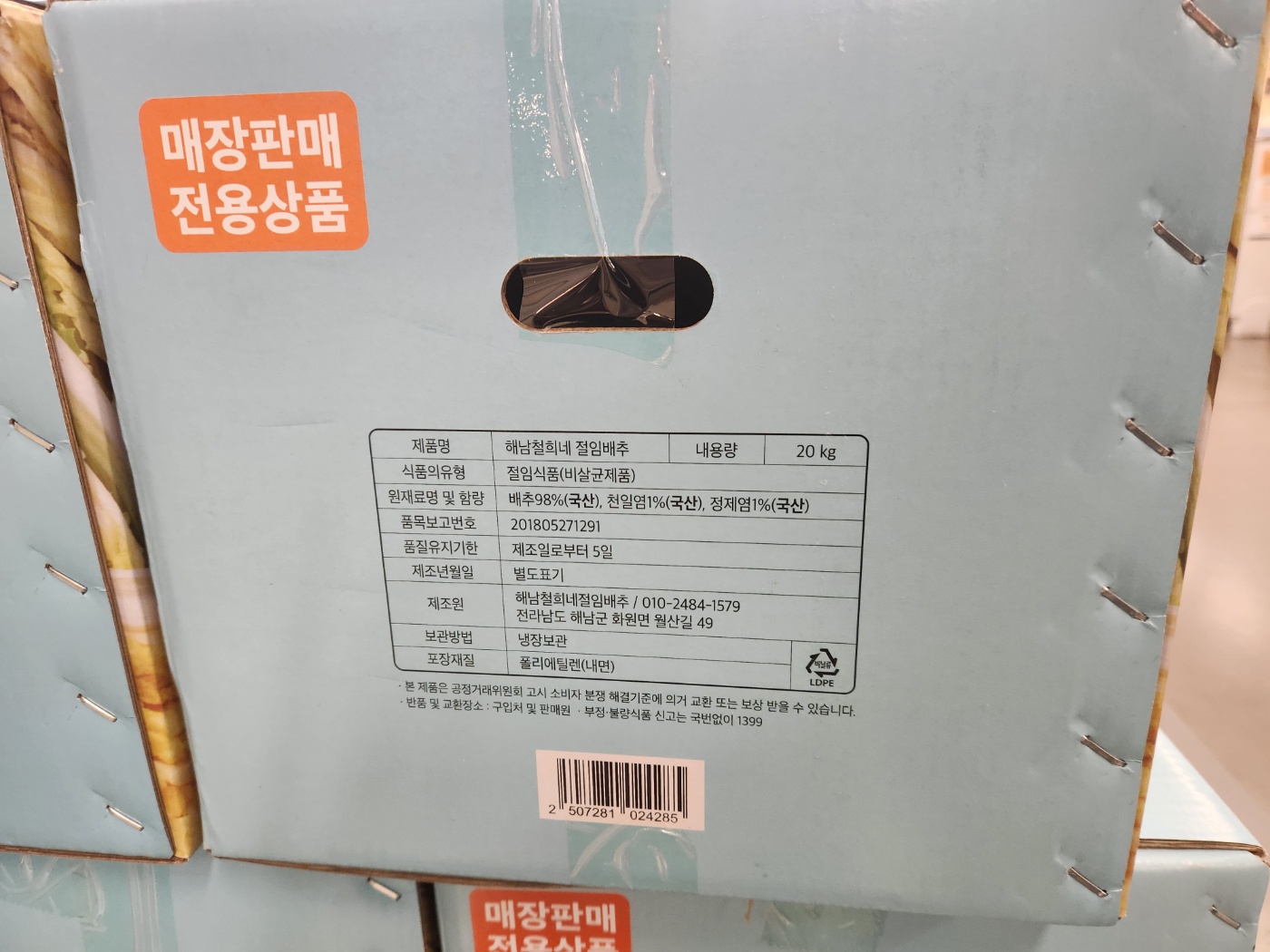 - 상품 : 해남철희네 절임배추 20Kg 1박스