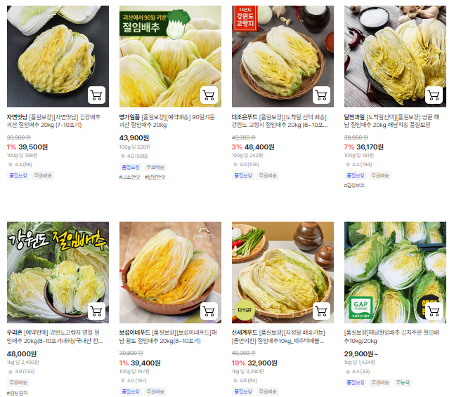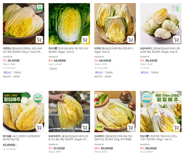 - 상품 : 해남, 괴산, 강원도 고랭지 절임배추